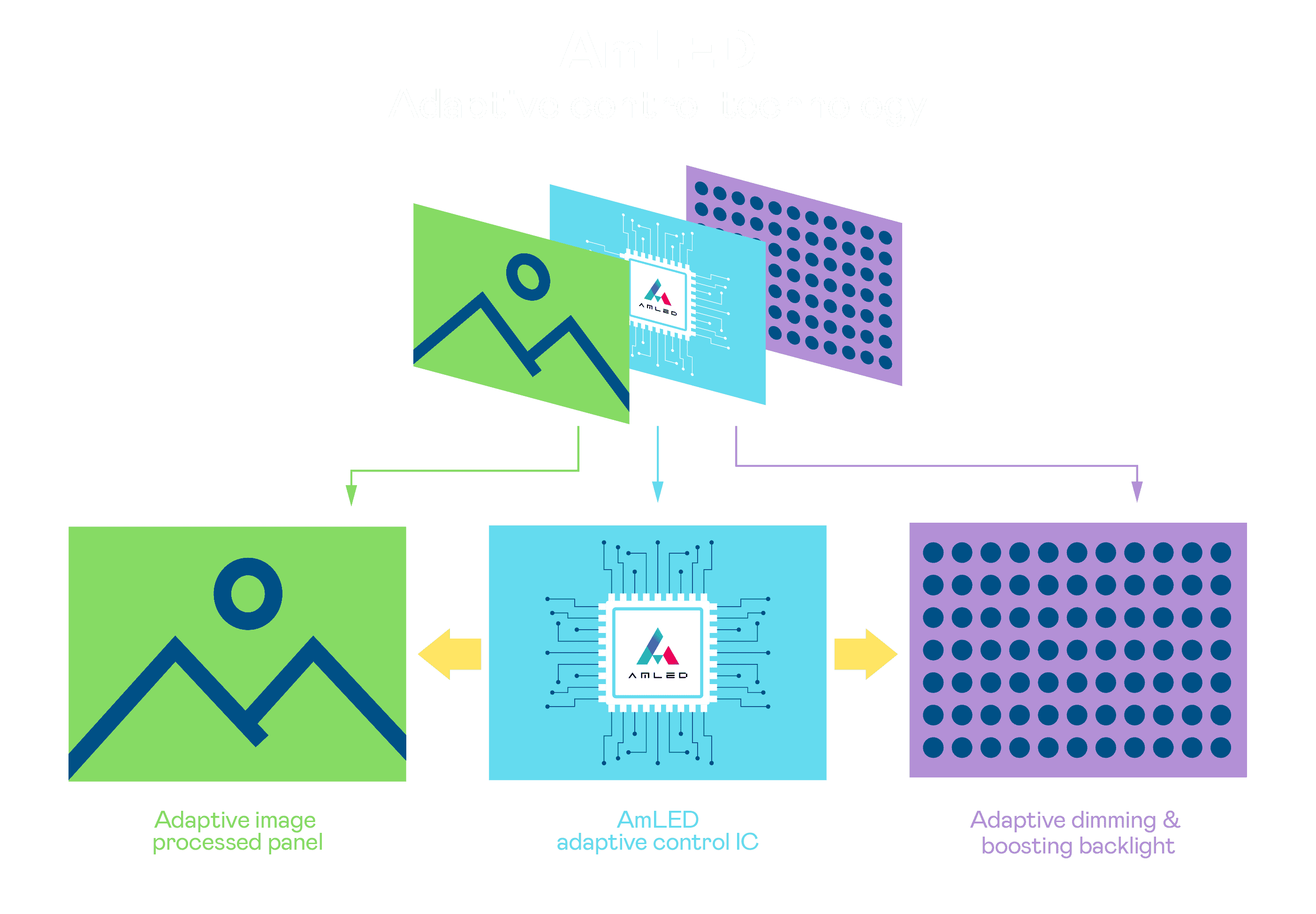 AmLED 具备更省电与低蓝光特性。。。与一般的 LED 背光显示技术相比,,,由于 AmLED 常时处于局部调光状态,,,其功耗仅有前者的 50% 左右,,同时 AmLED 还具备低蓝光特性,,,,满足长时间使用的护眼需求。。