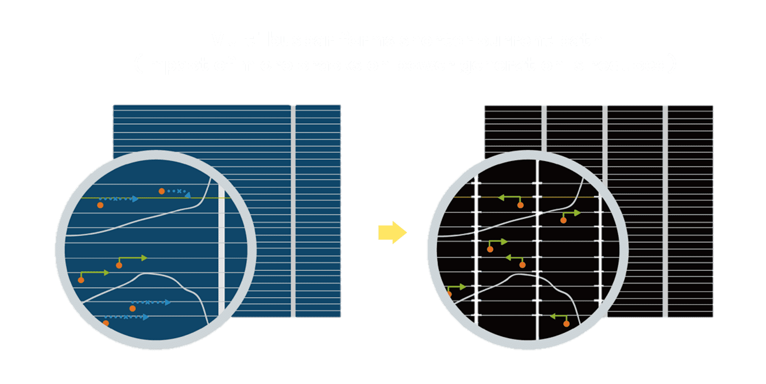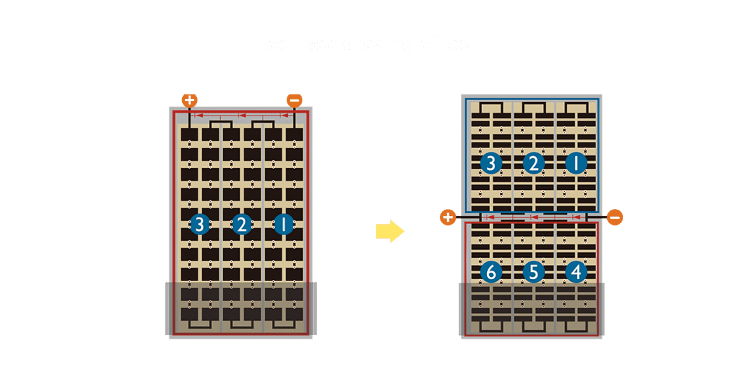 - 结合半切电池,,,,降低遮阴影响、、提升模组抗隐裂能力、、、并减少电阻损耗,,,进一步提升模组发电效能。。。。