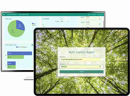 依循 ISO 国际标准建置出符合国际标准的全方位碳管理平台 (AUO Carbon Agent),,,其中温室气体盘查模组可协助客户将组织、、产品与供应链的碳排放源数据,,透过系统内建的系数资料库自动计算出碳排量,,提升整体盘查作业的效率,,,并以此拟定长期减碳策略,,达到低碳转型、、、、净零碳排的目标。。。